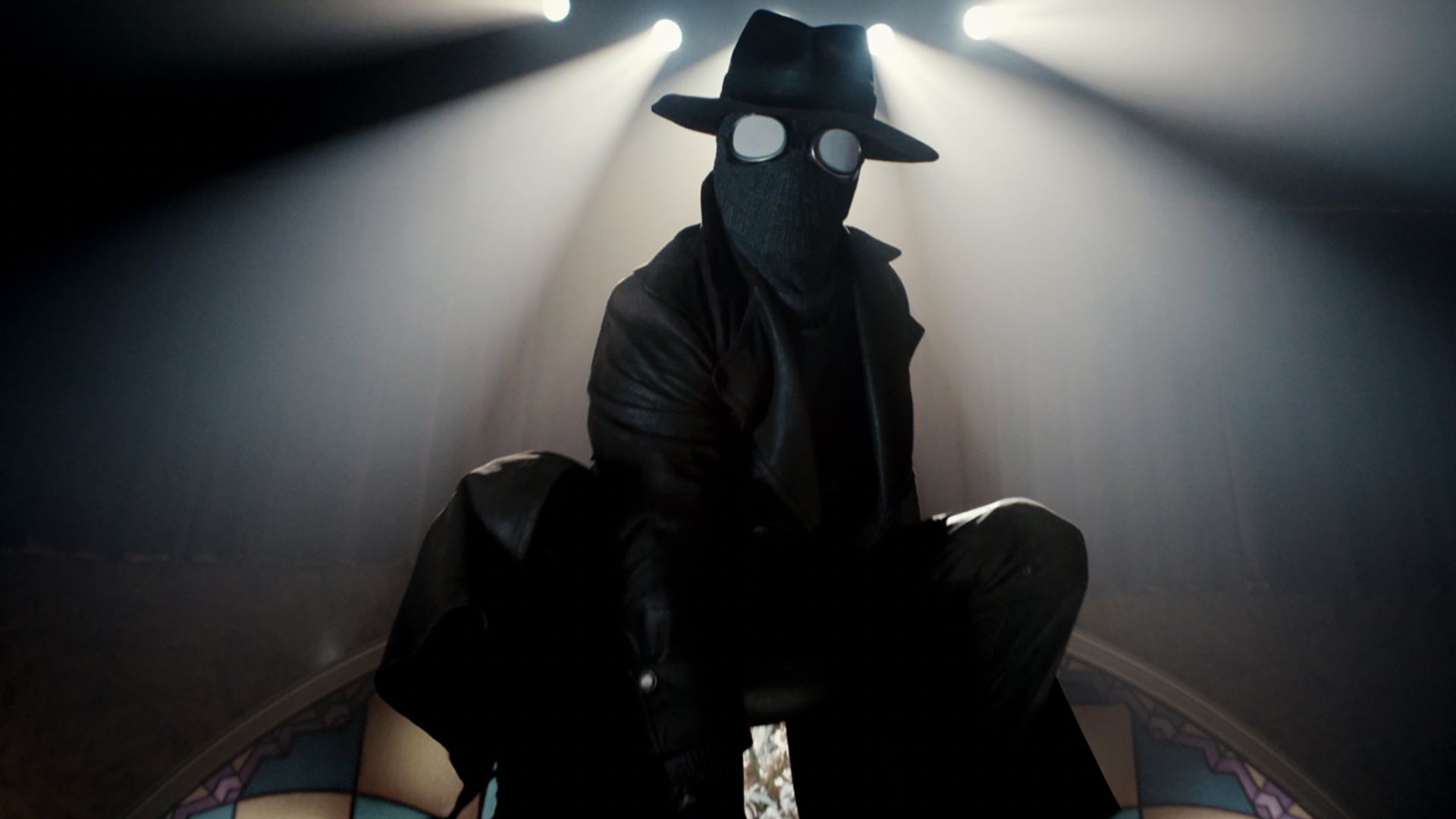 Spider-Noir perching in a church